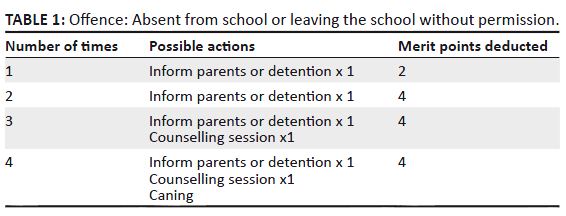 TABLE 1: Offence: Absent from school or leaving the school without permission.